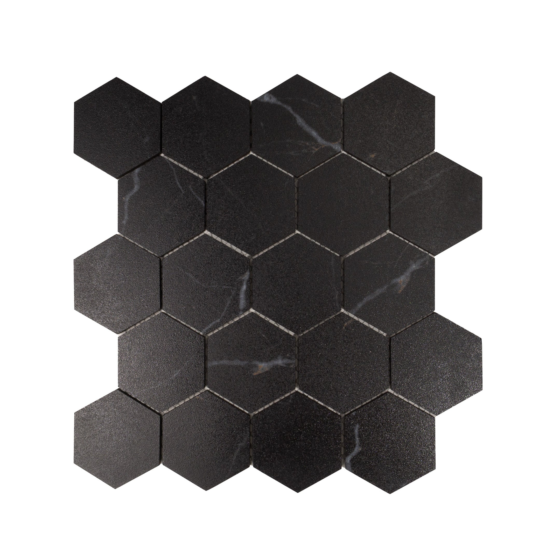 Longo Black 3" x 3" Hexagon Porcelain Marble Look Mosaic Tile