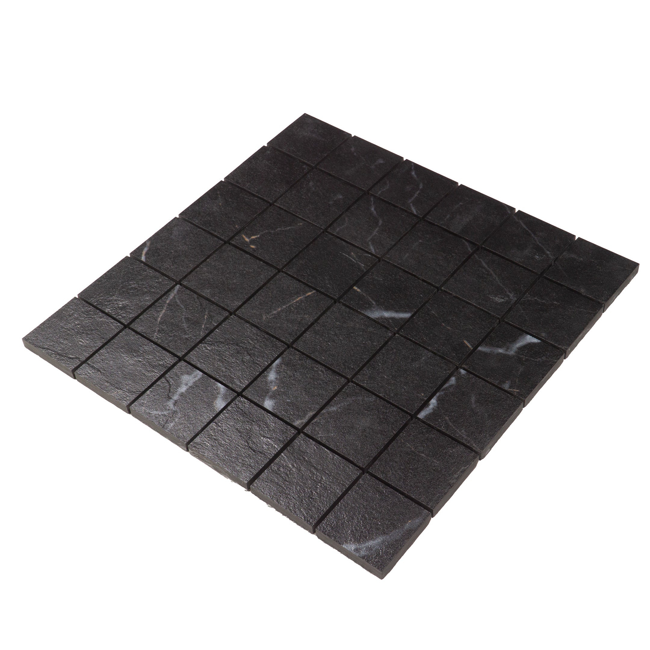 Onda Black Textured Porcelain Marble Look Square Mosaic Tile